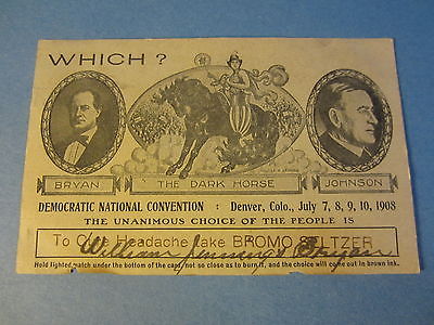 Title (ebay affiliate link): 1908 DENVER Democratic National Convention ADVERTISING POSTCARD - Bryan Johnson
