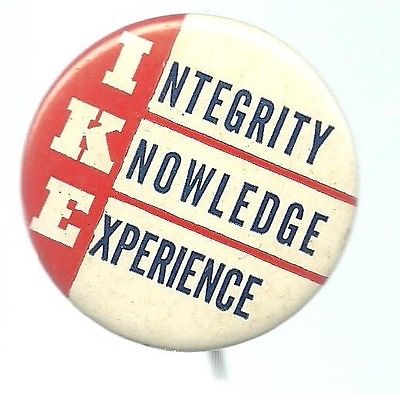 Title (ebay affiliate link): EISENHOWER, IKE INTEGRITY, KNOWLEDGE AND EXPERIENCE POLITICAL CAMPAIGN PIN