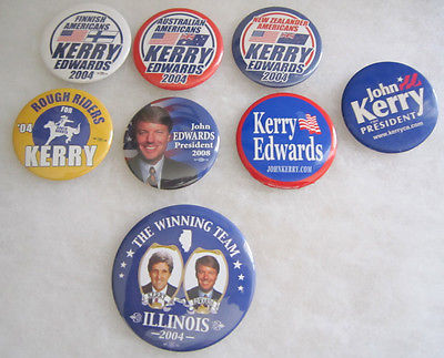 Title (ebay affiliate link): (8) Vintage 2004 John Kerry, Kerry/Edwards Campaign Buttons
