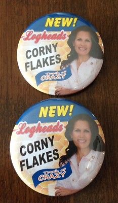 Title (ebay affiliate link): Pair of Michele Bachmann Corny Flakes Pinback Buttons