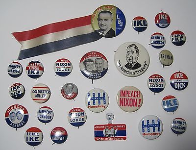 27 vtg Presidential Political buttons Ike, JFK, LBJ, Nixon, Goldwater, Stevenson