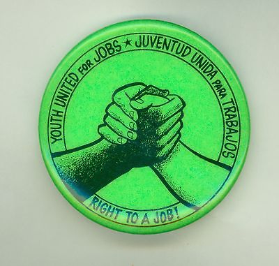 Vintage 1970s Youth United For Jobs Political Campaign Pinback Button green
