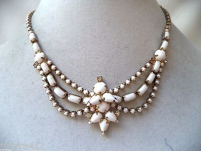 STUNNING VINTAGE ESTATE HIGH END WHITE MILK GLASS CAB DANGLE NECKLACE!!! 323W