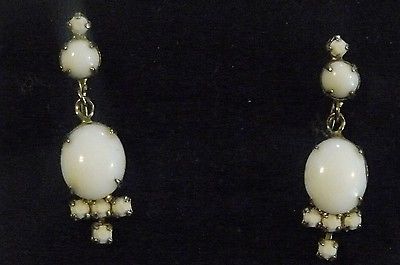BEAUTIFUL VINTAGE DANGLE MILK GLASS SCREW BACK EARRINGS