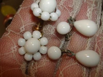 2 Pr Vintage WHITE MILKGLASS EARRINGS Huggie Bead Screw Back Milk Glass Jewelry