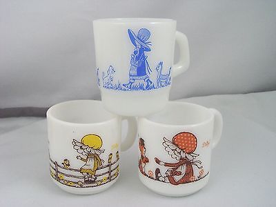 Vintage 3 Daisy Mugs Milk Glass and Termocrisa