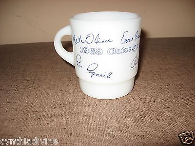 Chicago Cubs Baseball Coffee Mug FIRE KING MILK GLASS 1969 OUTFIELD Ernie Banks