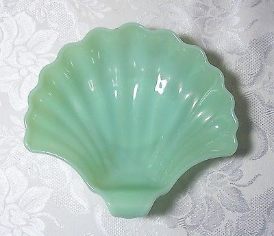 Title (ebay affiliate link): ANCHOR HOCKING JADE-ITE SCALLOPED SHELL CANDY DISH FIRE KING GREEN MILK GLASS