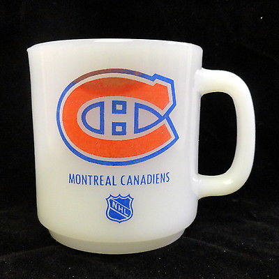 Title (ebay affiliate link): Vintage Montreal Canadiens Glasbake Milk Glass Coffee Mug Cup NHL Hockey White
