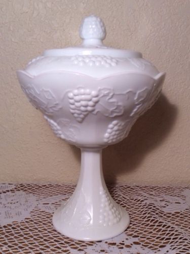 Title (ebay affiliate link): Indiana Milk Glass Colony Harvest Grape Pedestal Covered Candy Dish Compote