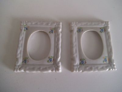 two Vinatge white porcelain oval approx. measure 3" picture frames blue flowers