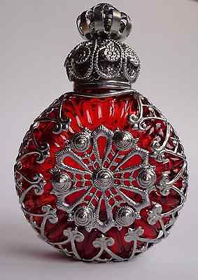 Luxury Czech Handmade Rhinestone RED VELVET Glass Perfume bottle
