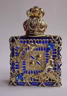 Luxury Czech Handmade Rhinestone BLUE GLASS Perfume bottle Filigree