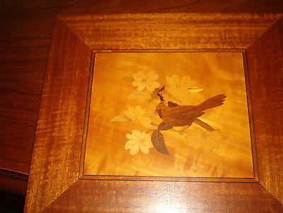 Marquetry picture, Cardinals & Dogwoods by Wm Bader