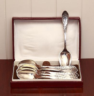 Set of 6 Vintage Russian German Silver Melchior Boxed Coffee Spoons from 70s
