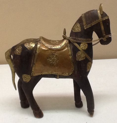 Title (ebay affiliate link): Vintage Wood Carved Horse Figurine with Brass and Copper Embellishments