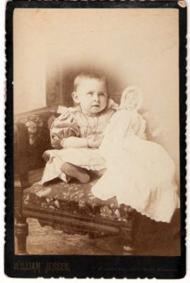 ANTIQUE CABINET PHOTO BABY AND DOLL
