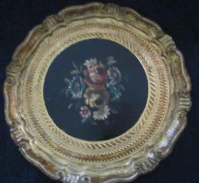 Florentine Gold Italy Tole Tray Hand Painted Flowers