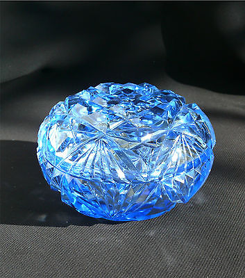 Antique Blue Cut Glass Czechoslovakian Dresser Jar