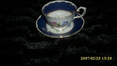 CROWN STAFFORDSHIRE FLOWER TEA CUP AND SAUCER DUO SCALLOPED GOLD GILT