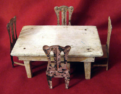 Title (ebay affiliate link): ANTIQUE 1930s DOLL TABLE CHAIRS WOOD & METAL FURNITURE