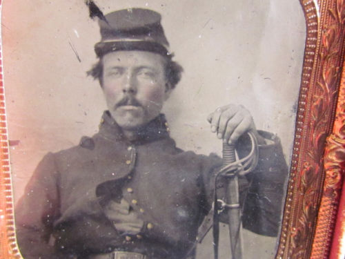 Title (ebay affiliate link): Civil War cavalry soldier holding sword tintype photograph