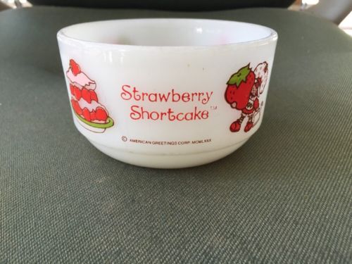 Vtg 1980s Strawberry Shortcake Fire King Milk Glass Bowl Dish Anchor Hocking USA