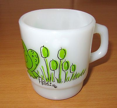 Title (ebay affiliate link): Vintage Fire King Anchor Hocking Green Frog Hildi Mug Cup Stackable Milk Glass