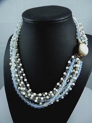 Title (ebay affiliate link): VINTAGE Marvella OPALESCENT MILK GLASS Multi Strand Beaded NECKLACE! SIGNED