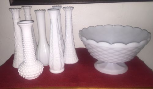 Title (ebay affiliate link): Vtg Antique Milk Glass Hobnail Vase Large Fruit Bowl Dish Lot