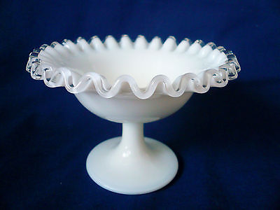 Fenton Milk Glass ~ SILVER CREST ~ Footed NUT DISH / CANDY Compote silvercrest
