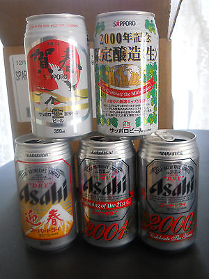 Japan BEER can set 5 pc Limited Edition New Year 350ml Sapporo Asahi Milllennium