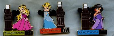 COCA COLA PIN 3 PINS cinderella SLEEPING BEAUTY jasmine MCDONALDS