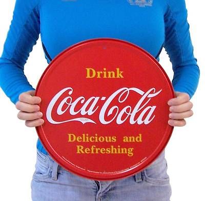 Title (ebay affiliate link): Drink Coca Cola Round Tin Sign Vintage Style Retro USA Gift 12" FREE SHIP + NR!!