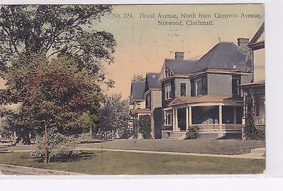 NORWOOD OHIO POSTCARD PM 1912 FLORAL AVE NORTH FROM CAMERON