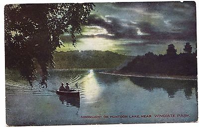 MOONLIGHT ON HUNTOON LAKE WATERFORD MICHIGAN 1912 POSTCARD
