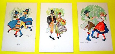 Aina Stenberg, Swedish, lot of 3 cards, Dalarna, Uppland & Mora, dancing couples