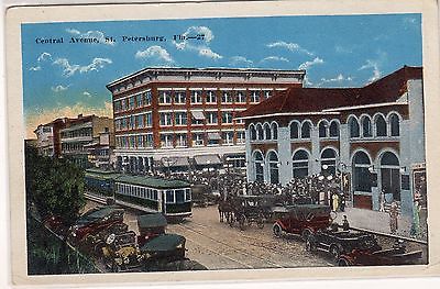 PC CENTRAL AVE ST PETERSBURG FL TWO TROLLEYS 1920'S