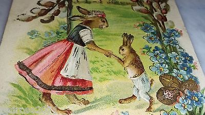 Title (ebay affiliate link): BW 289 VINTAGE old holiday EASTER postcard DRESSED BUNNIES rabbits BIRD HOUSE
