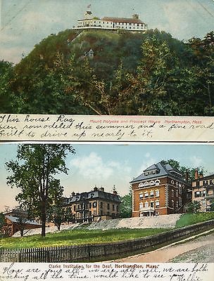 Northampton,MA,1907/08 Used Postcards,Clarke Institution for Deaf & Mt.Holyoke &