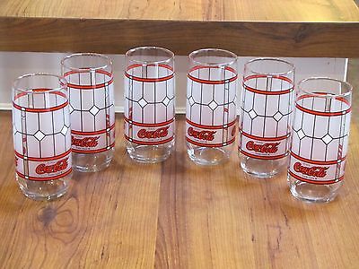 Title (ebay affiliate link): Vintage Red Coke Coca Cola glasses w/ frosted stained glass window set of 6