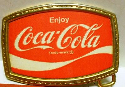 Title (ebay affiliate link): 1980s Odd Rectangular Enjoy Coca-Cola Belt Buckle- Made In USA -Very Colorful