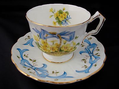 VTG AYNSLEY Fine Bone China Cup & Saucer "April Primrose" BLUE & YELLOW, England