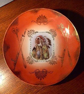 SCARCE ROYAL SAXE ES GERMANY INDIAN CHIEF HIGH HAWK WALL PLATE