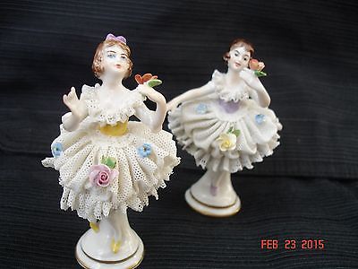 Antique PAIR VOLKSTEDT BALLERINA FIGURINES Dresden Lace PORCELAIN Germany