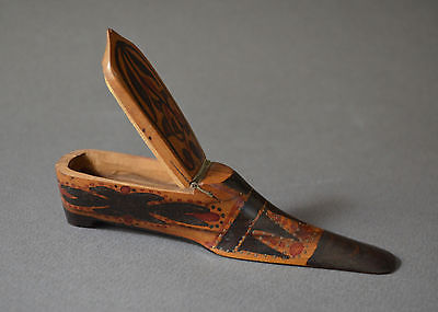 VERY HANDSOME ANTIQUE HAND-PAINTED NOVELTY WOODEN SHOE SHAPED BOX