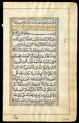 1750 Gold Illuminated Persian Koran Leaf Beautiful Sura Heading Iran Islam