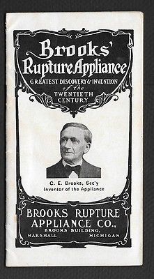Title (ebay affiliate link): 1912 BOOKLET FOR BROOK'S RUPTURE APPLIANCE QUACK HERNIA ADOMINAL SUPPORTS
