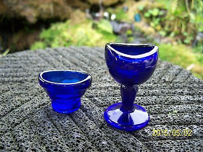 Pair Blue Glass Embossed Bases 1917 John Bull=&=Oprex Bath Wash Cups