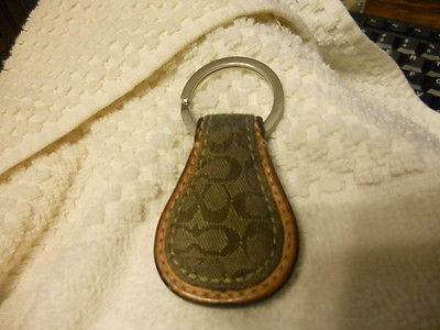 Coach Leather Textile Vintage Brown Logo Key Chain / Fob Made in USA